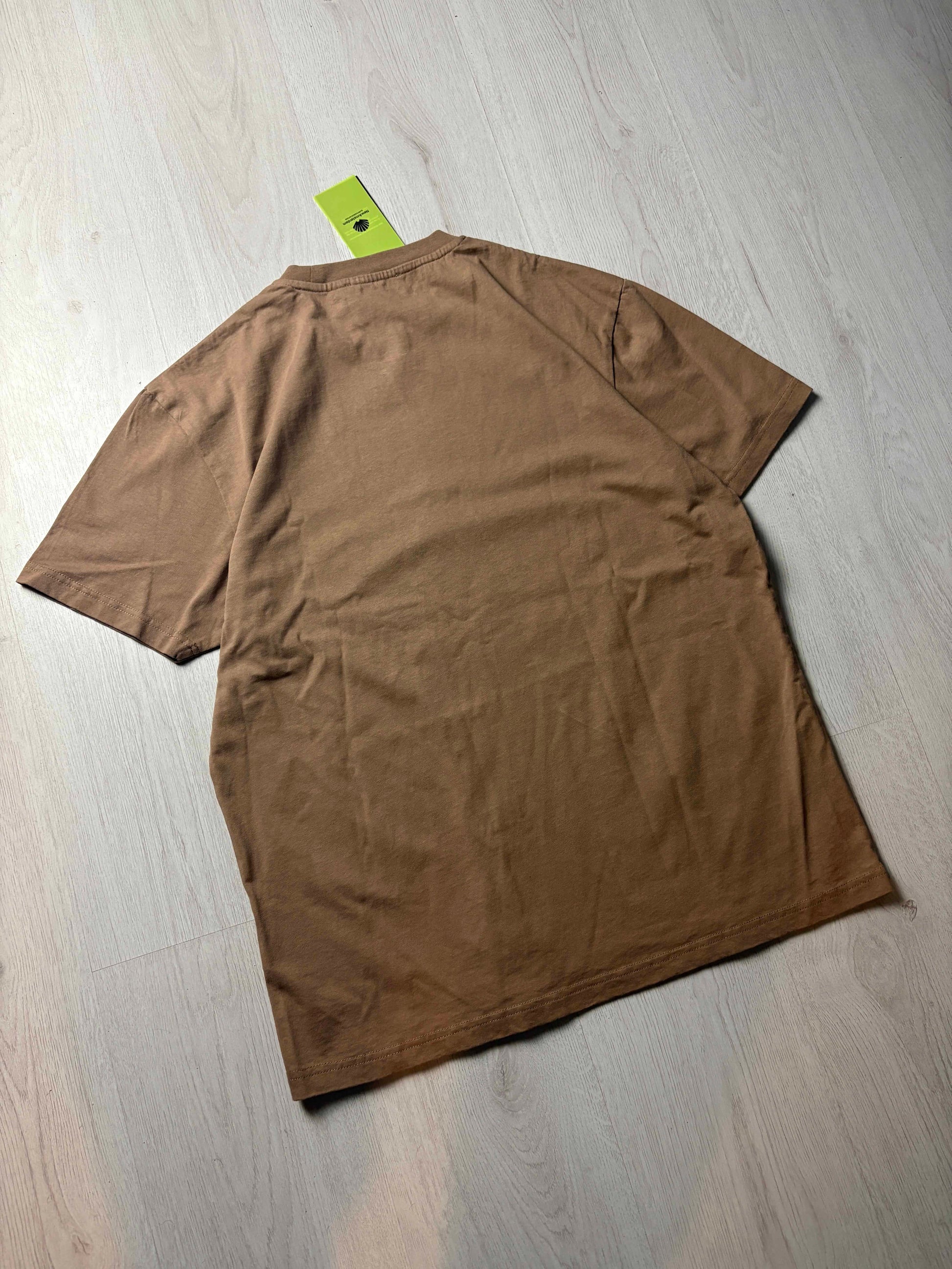 Bruin T-shirt van New Amsterdam Surf Association met een minimalistische uitstraling en subtiele branding. Gemaakt van stevig katoen met een comfortabele fit. Dit item is volledig nieuw, inclusief originele prijskaartjes, en beschikbaar in maat Small en Medium.