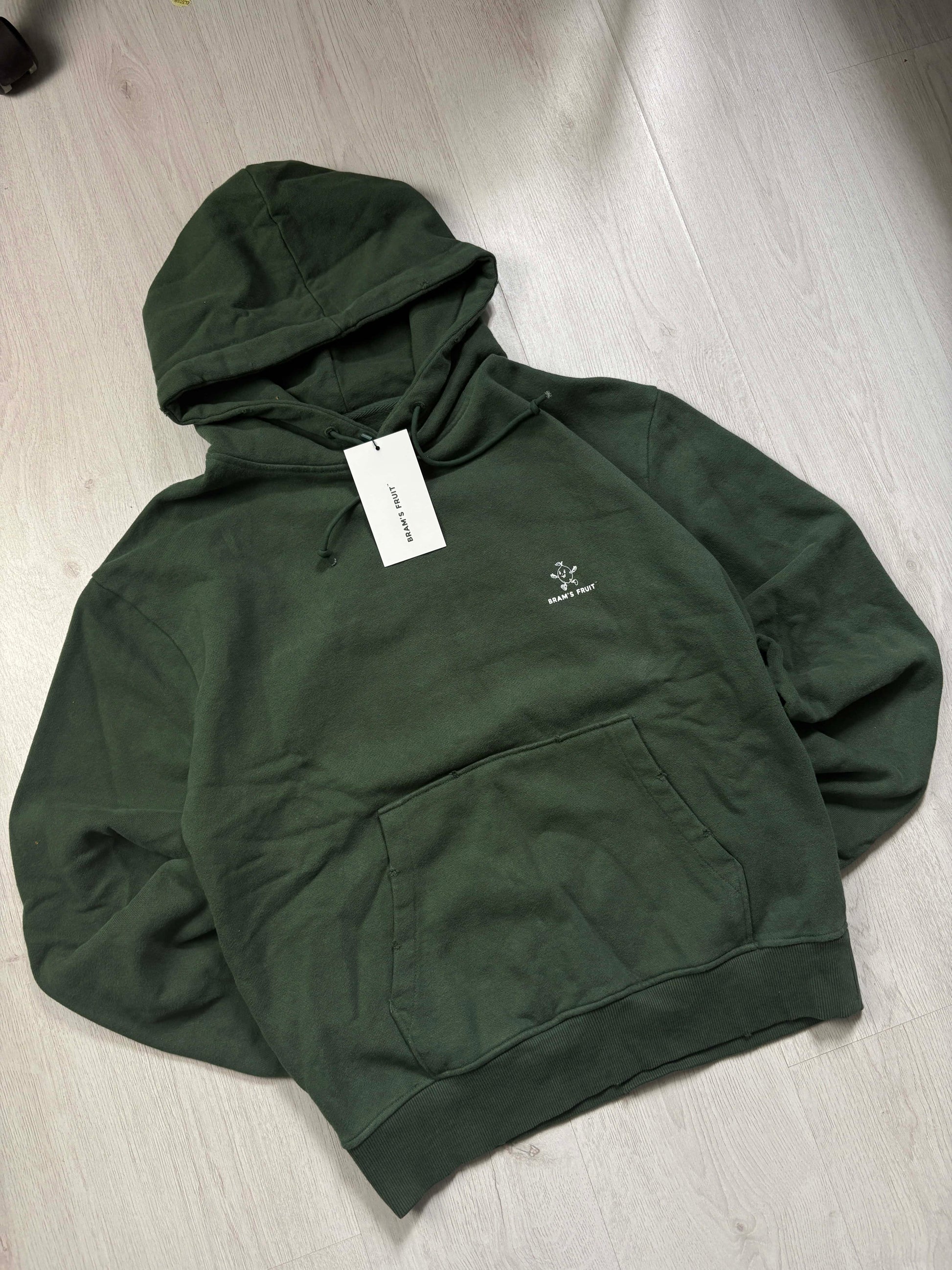 Groene Brams Fruit distressed hoodie β gloednieuw met originele kaartjes en verkrijgbaar in meerdere maten. Deze hoodie valt relaxed en is gemaakt van stevige kwaliteit met intentional distressing voor die unieke worn-in look. De grove details, het zware katoen en de uitgesproken stijl maken dit een standout piece binnen je streetwear collectie.