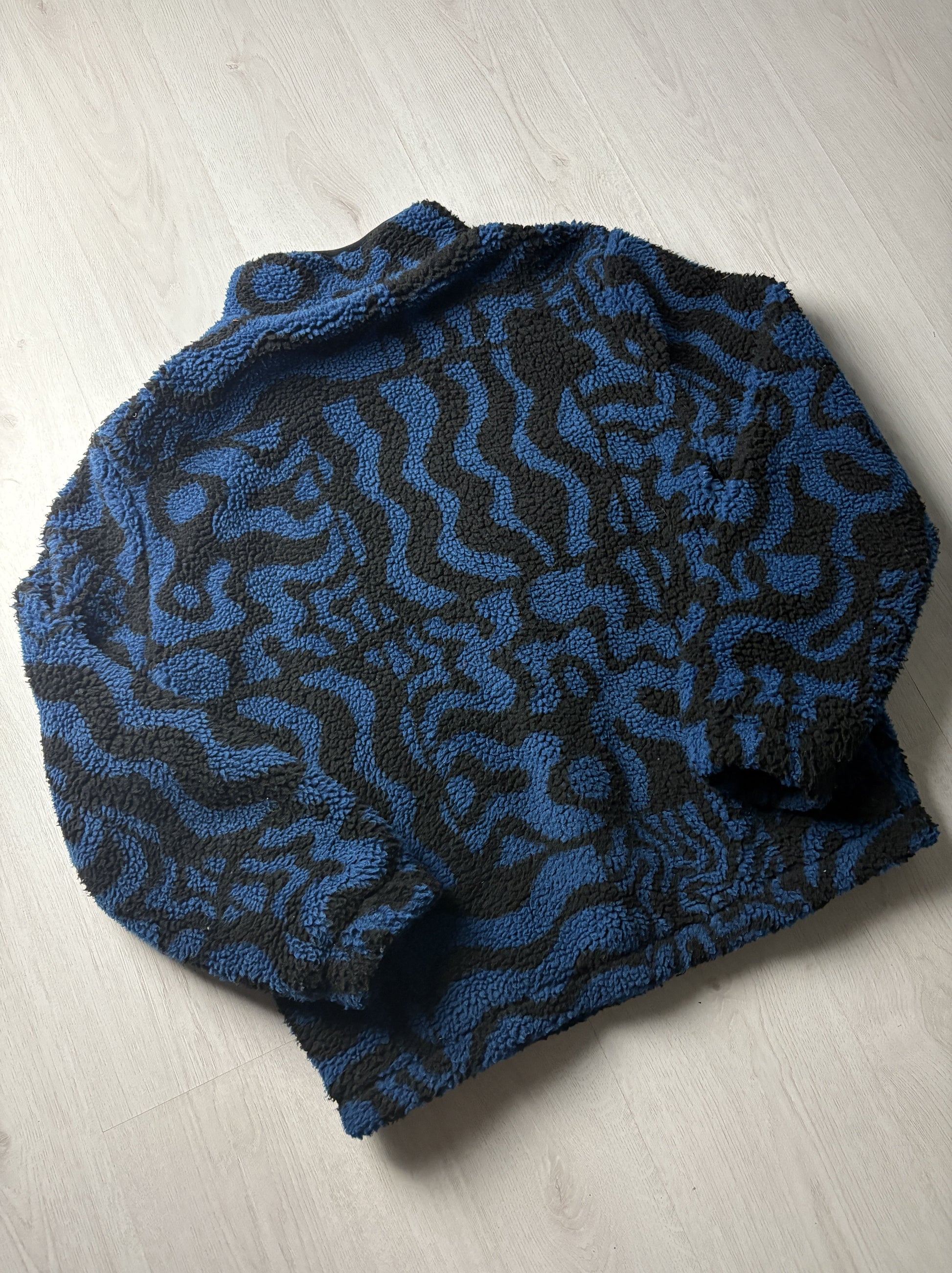 💙 Opvallend en uniek: All-over blauw met zwart grafisch patroon – echte eyecatcher